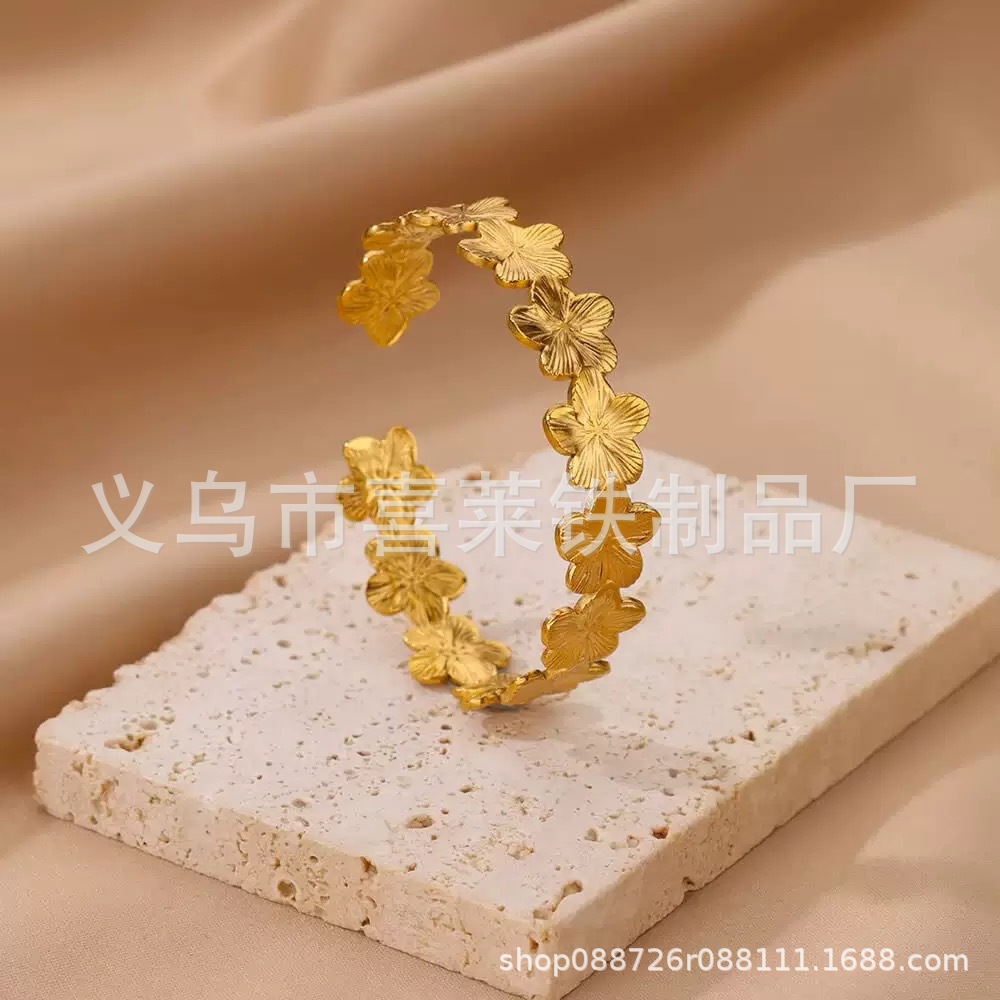 ヨーロッパとアメリカの新鮮な花チタン鋼ブレスレットニッチデザイン鉄製品金属オープンジュエリーレディースブレスレット卸売