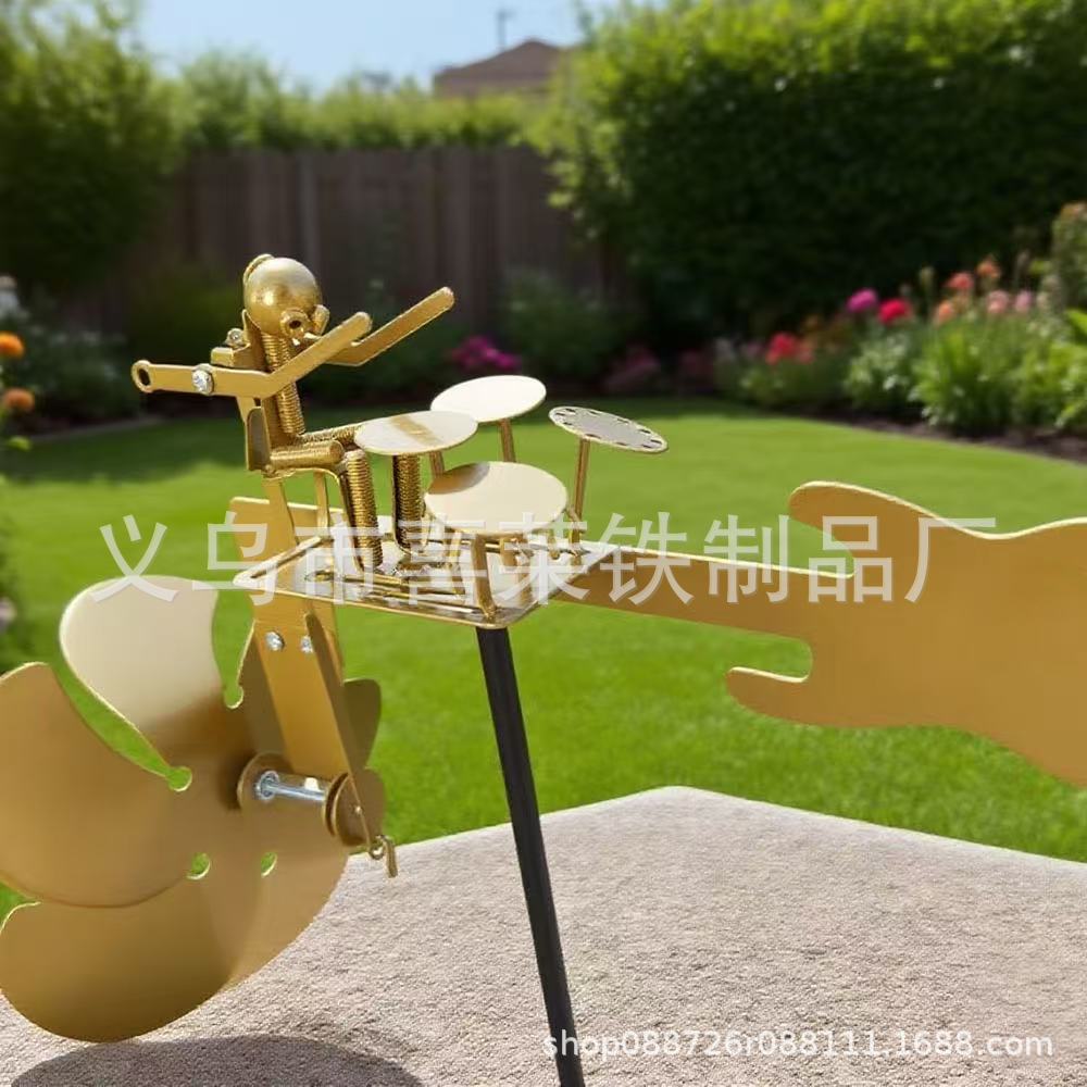国境を越えた新製品Rock drummer wind millingドラマー風車手作り金属風車装飾
