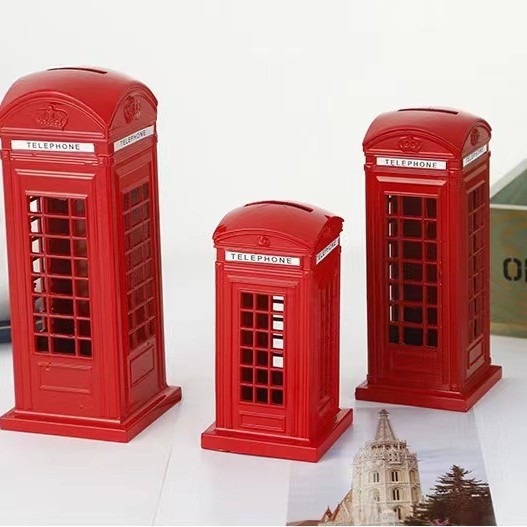 メタルクリエイティブロンドンレトロ電話ボックス置物工芸品子供貯金箱貯金箱小銭入れ収納置物