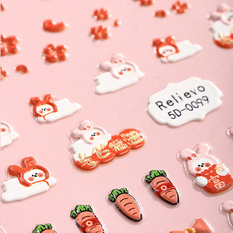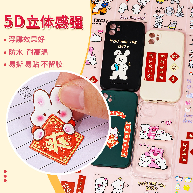 ウサギ新年漫画クリエイティブステッカーかわいい5d立体レリーフ携帯電話ステッカー防水diy装飾ステッカーバックテープ付き