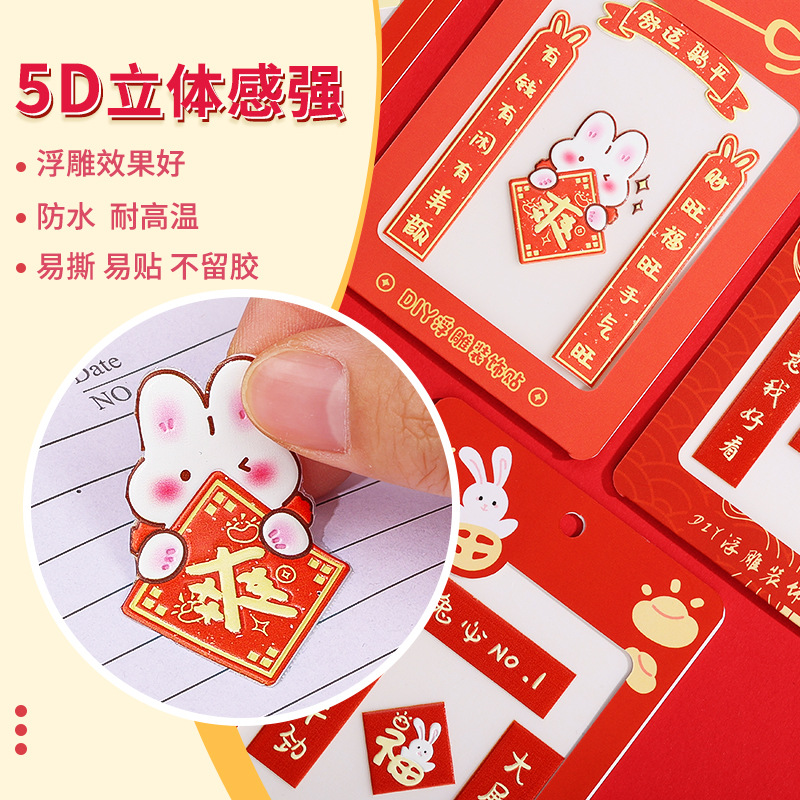 2023中国の新年漫画文房具ステッカーかわいい国潮风5dレリーフウサギ学生子供装饰ステッカー