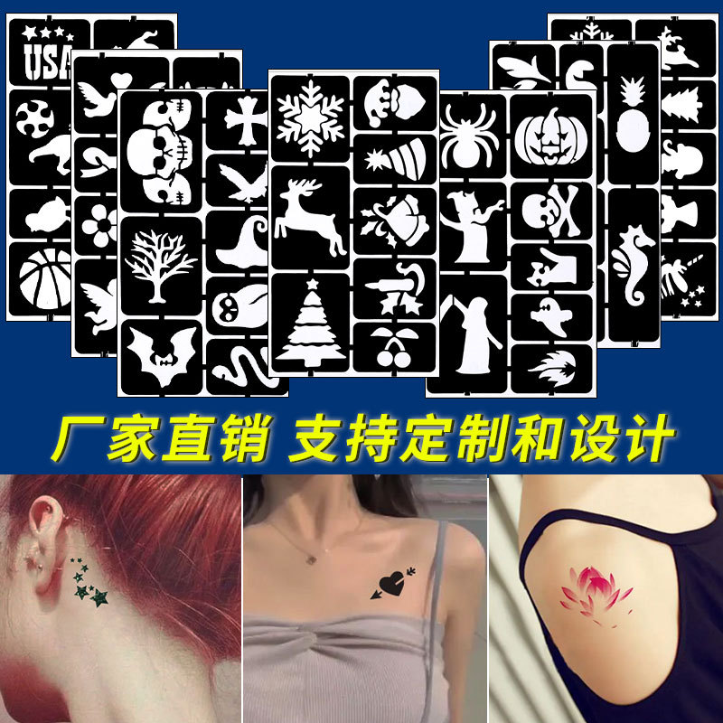 正祥ハンナ透かし彫りタトゥーステッカー、スプレーデザインテンプレート、ヘナ3D漫画タトゥーステッカー、小柄卸売