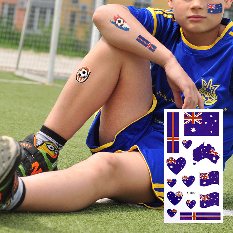 外国貿易2023ワールドカップの祝日の紋章は防水の半永久的な子供の漫画の刺青のシールを貼ってまっすぐに刺青を貼ります。