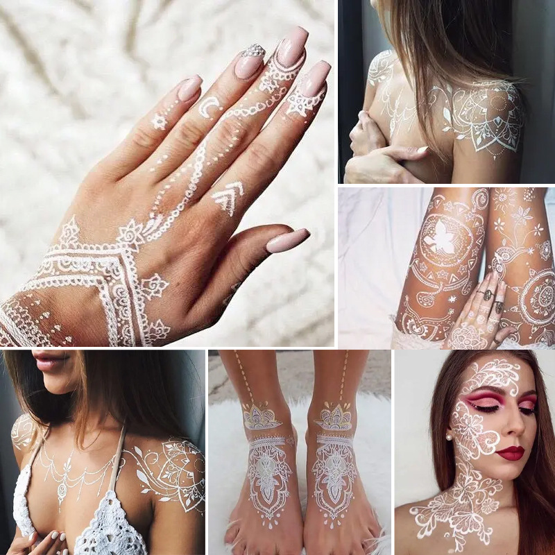 正祥クロスボーダー白いレースタトゥーステッカー3d防水ヘナタットオアラブ花嫁結婚式祭り
