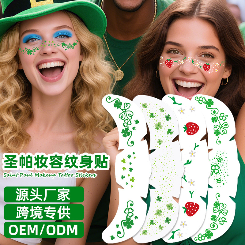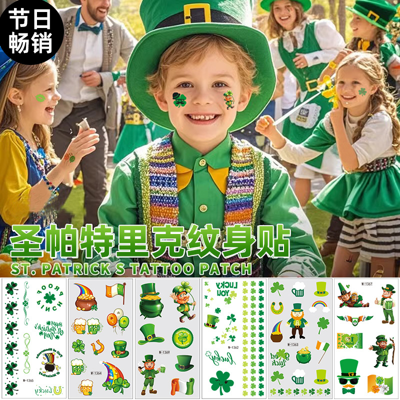 クロスボーダー聖パトリックの日フェイスステッカー防水子供用メイクアップタトゥーステッカーカスタム聖パトリックの日 パトリックの日
