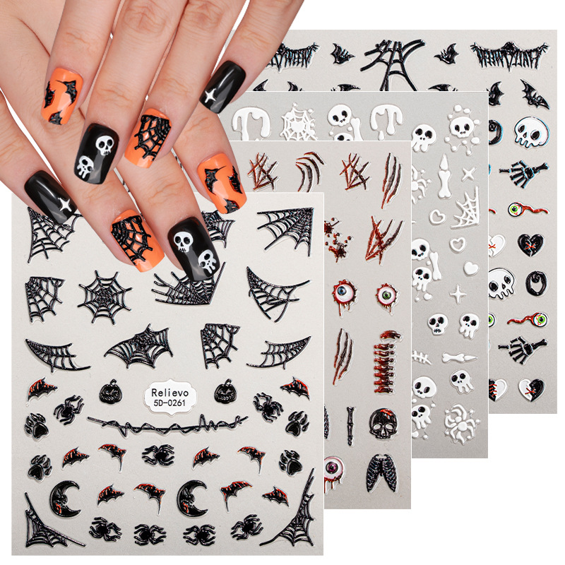正祥2024新型レリーフネイルシール5Dハロウィーンアニメ爪貼りクリスマス対外貿易カスタム卸売り
