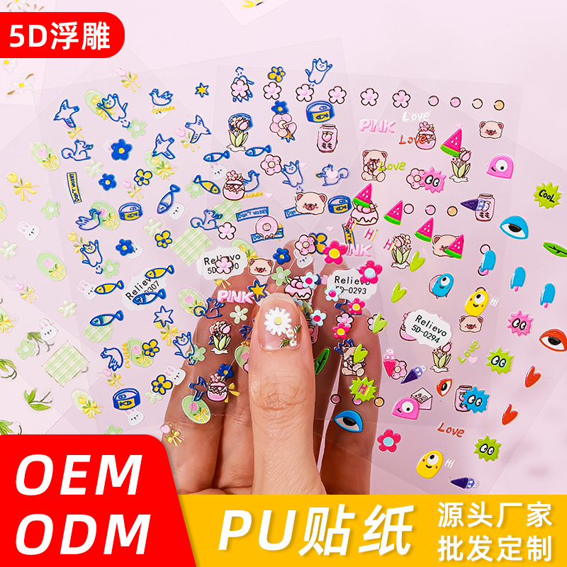 かわいいインサマーゼリーショートネイルステッカー漫画クリエイティブステッカー 5D 立体ステッカーレリーフハンドブックステッカー OEM