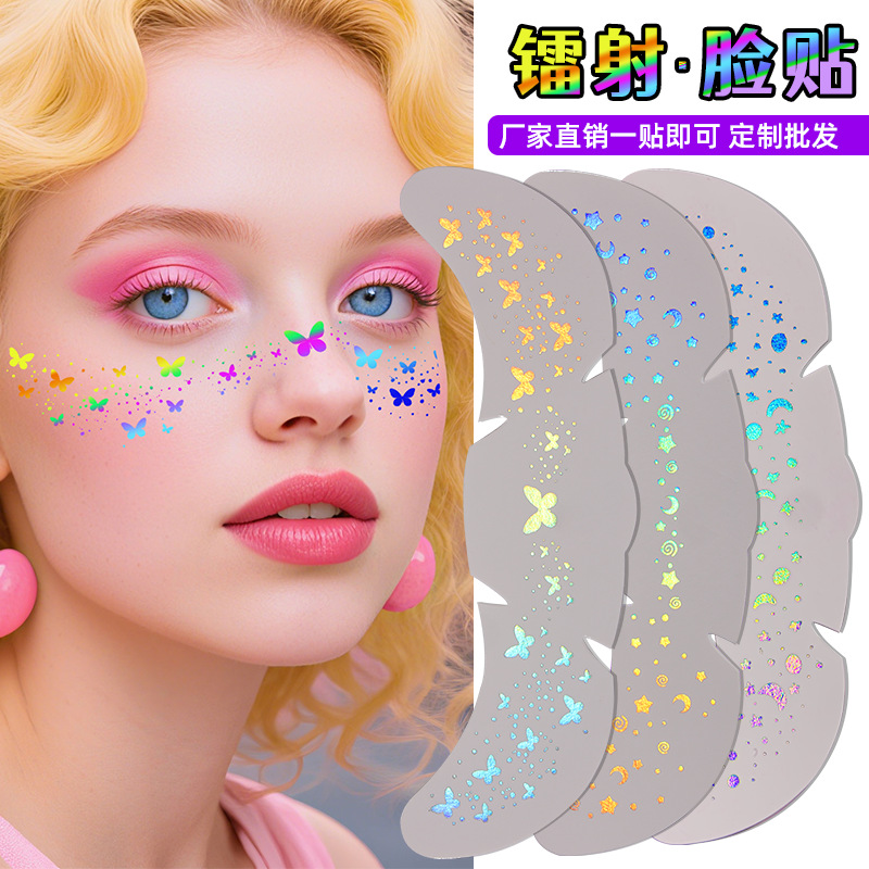 クロスボーダー 6 枚セットホットレーザーそばかすフェイスステッカー防水一時的なタトゥーステッカーホログラフィックフラッシュメイクアップステッカータトゥー
