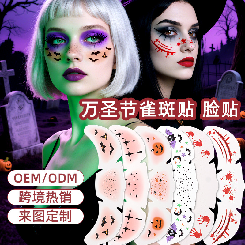 国境を越えたヨーロッパとアメリカのハロウィーンの顔ステッカー、タトゥーステッカー、防水性と耐汗性の模擬そばかすステッカー、一時的なパーティーパーティー