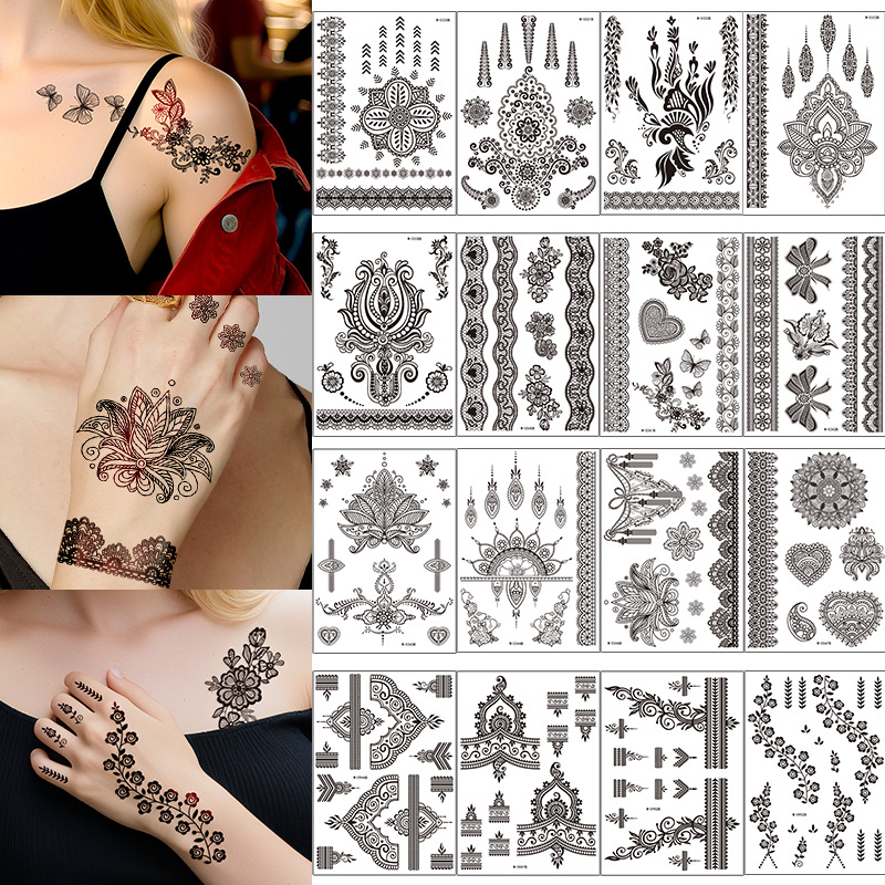 クロスボーダー新しいブラックレースタトゥーステッカー防水ヘナアマゾンハンナ一時的なタトゥー