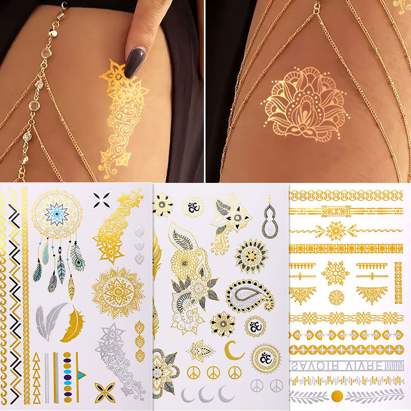 正祥国境を越えた箔押し紋様は防水欧米のレトロな金属の一時的なタトゥーを貼っている