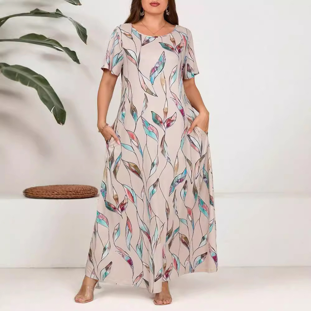 2024春夏越境アマゾン欧米女装新作ファッション半袖プリント羽大サイズワンピース女性