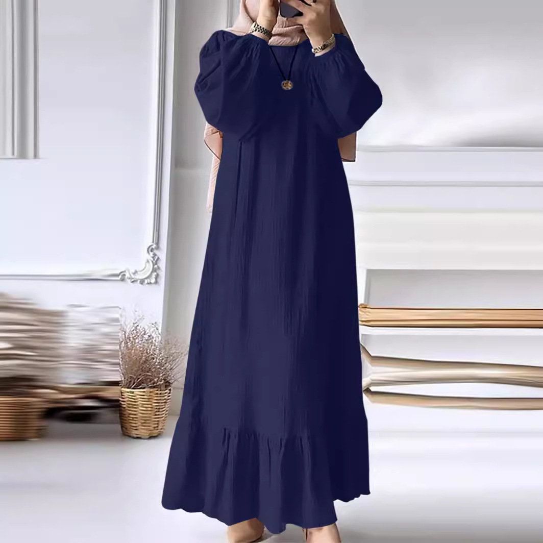 2024热い贩売新しい女性の服のローブ春と秋の新しいファッションの长袖レトロなドレスソリッドカラーのフリルの縁の下