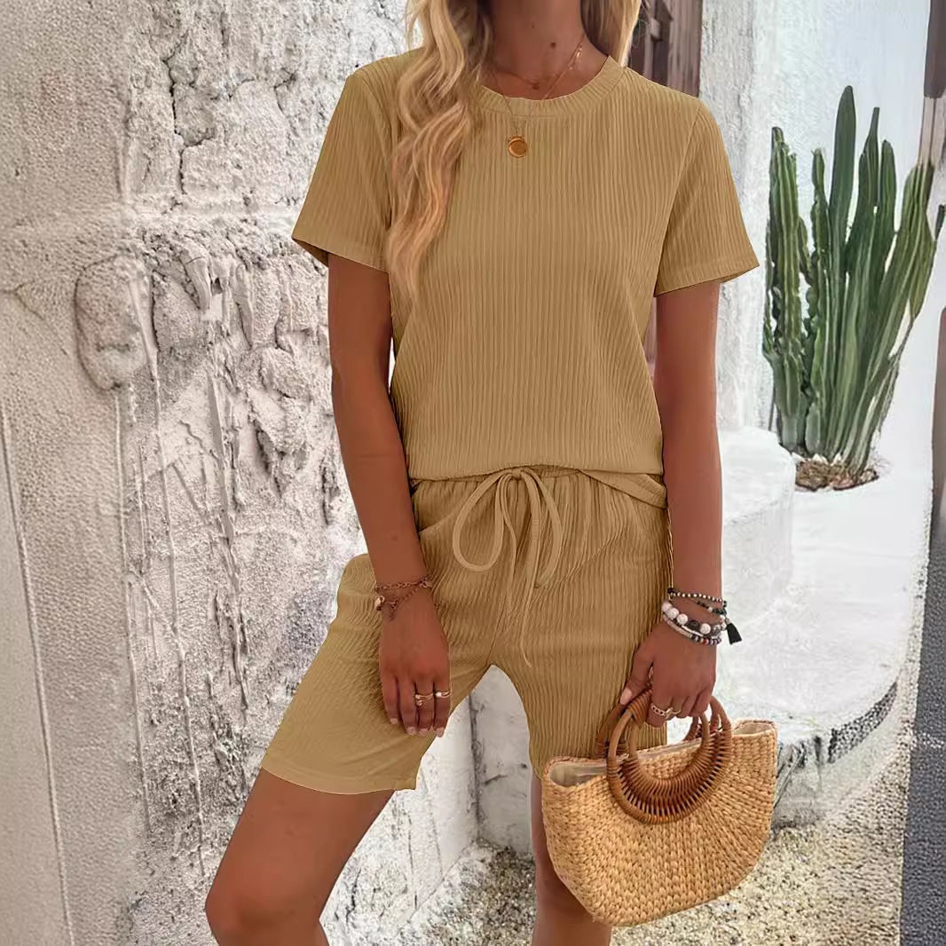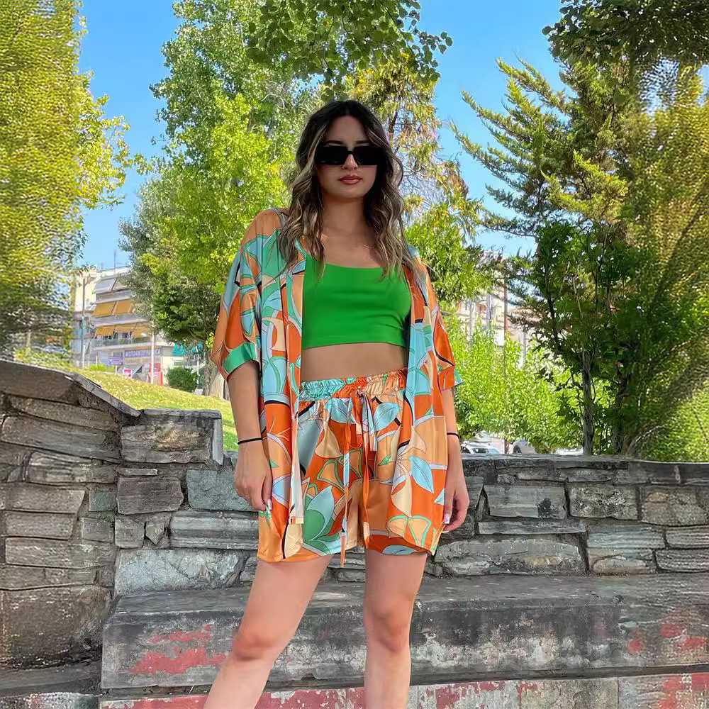 2024国境を越えたアマゾンの新型欧米カジュアルファッションプリントtシャツパンツセット女性