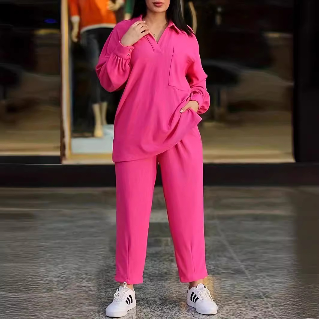 欧米の女性のファッションのカジュアルなスーツの2023秋の襟の長袖のシャツの腰の高い袋のカジュアルなズボン