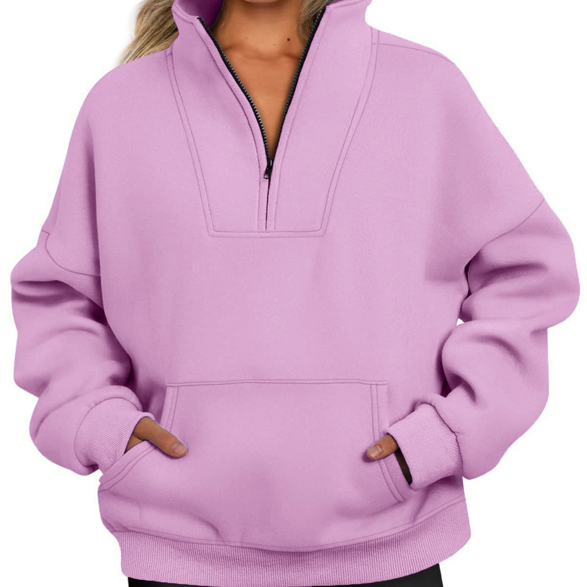 2023秋冬立襟純色のガードルのポケットのファスナーの婦人服のカジュアルでゆったりしています。