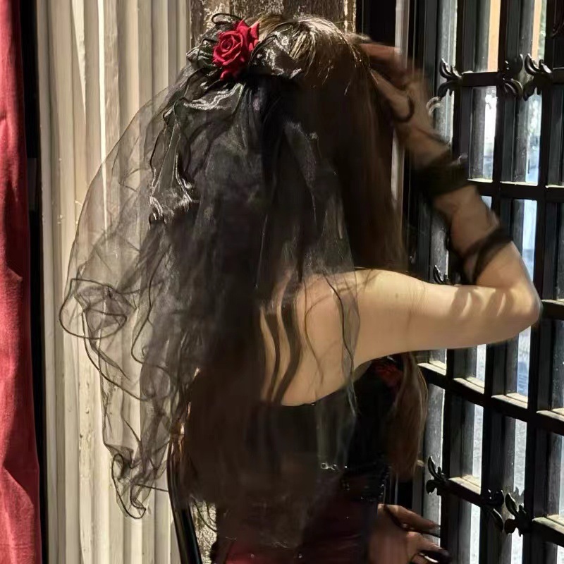 暗黒のハロウィーンは幽霊の花嫁のベールの魔女の精霊の黒い蝶結びの頭飾りに扮装します。