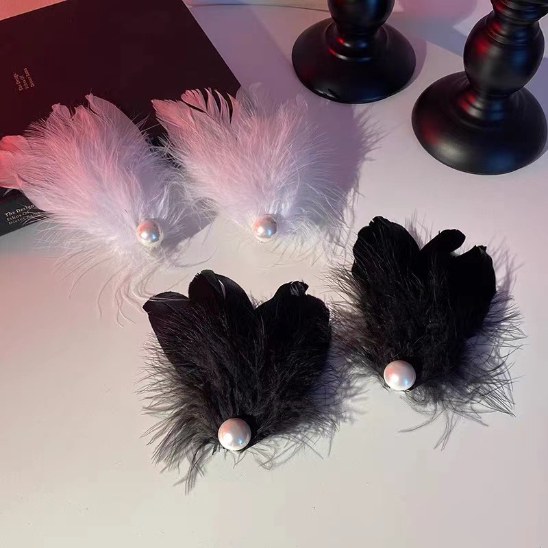 森系アンドロメダ超仙純欲ダチョウ毛羽ヘアピン高級感髪飾り側縁前髪クリップ