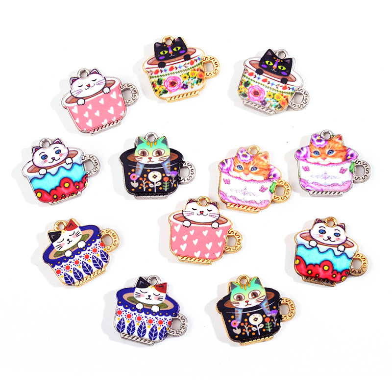趣味プリントティーカップ猫ペンダント合金滴油部品diyアニメアクセサリー手作りイヤリングネックレスペンダント