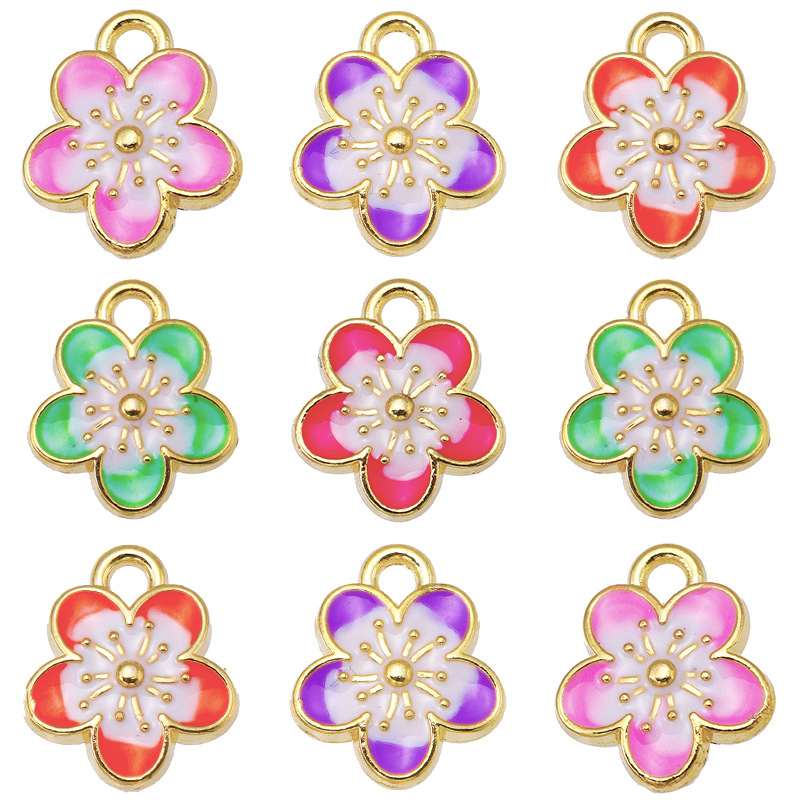 かわいい多色桜ミニ花五弁花ペンダントdiy合金アクセサリーアクセサリー