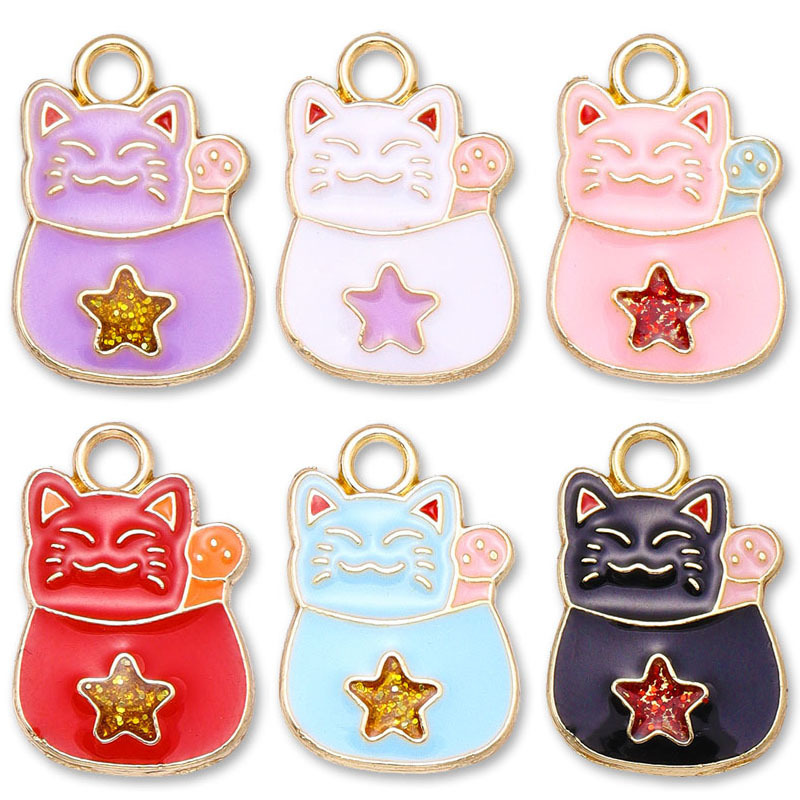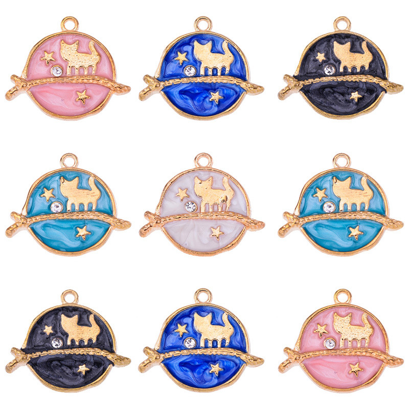 クロスボーダー珠光滴油点ドリル猫ニャン星ペンダントdiy合金アクセサリー頭飾りキーホルダーペンダント