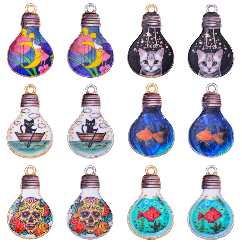 趣味電球ペンダント滴油プリント猫金魚頭蓋合金diyイヤリングネックレスアクセサリー材料卸売り