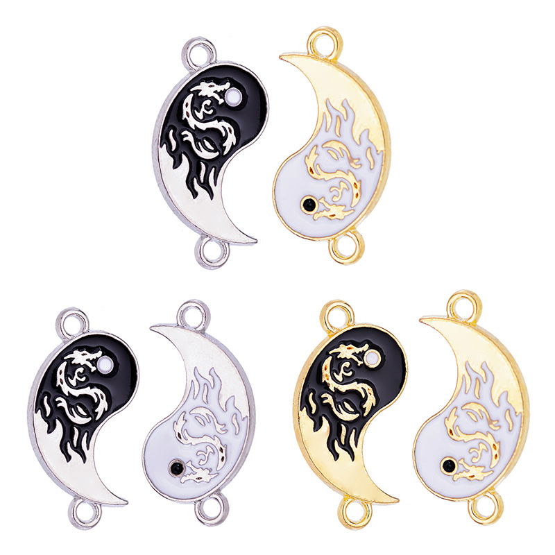 中国風白黒陰陽太極八卦龍形ダブルペンダント合金diyカップルアクセサリーネックレスペンダント