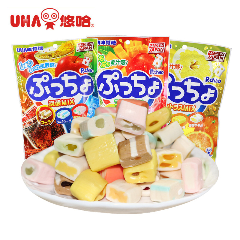 Uha悠哈普超什錦サンドイッチ果物ソフトキャンディ90g日本輸入ジュースソフトキャンディ味ウェディングキャンディーお菓子
