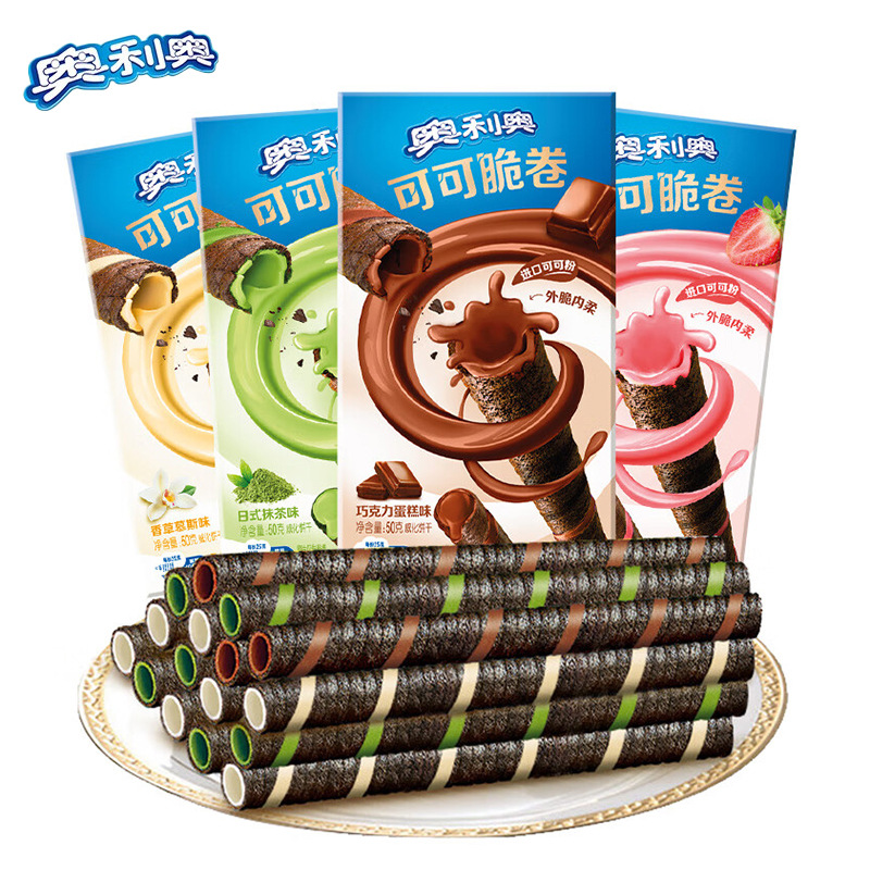 オ・レオ クリスピーロール 50g/箱 ココアクリスピーロール ストロベリーチョコレートサンド ウエハースエッグロールビスケット スナック食品