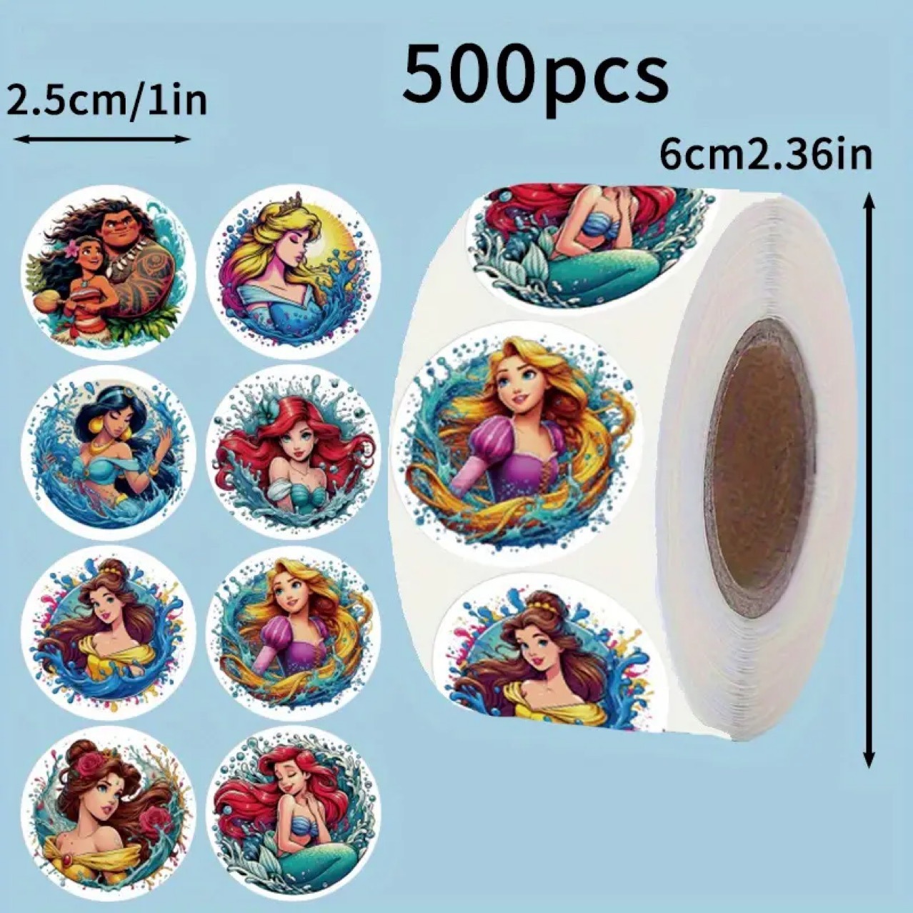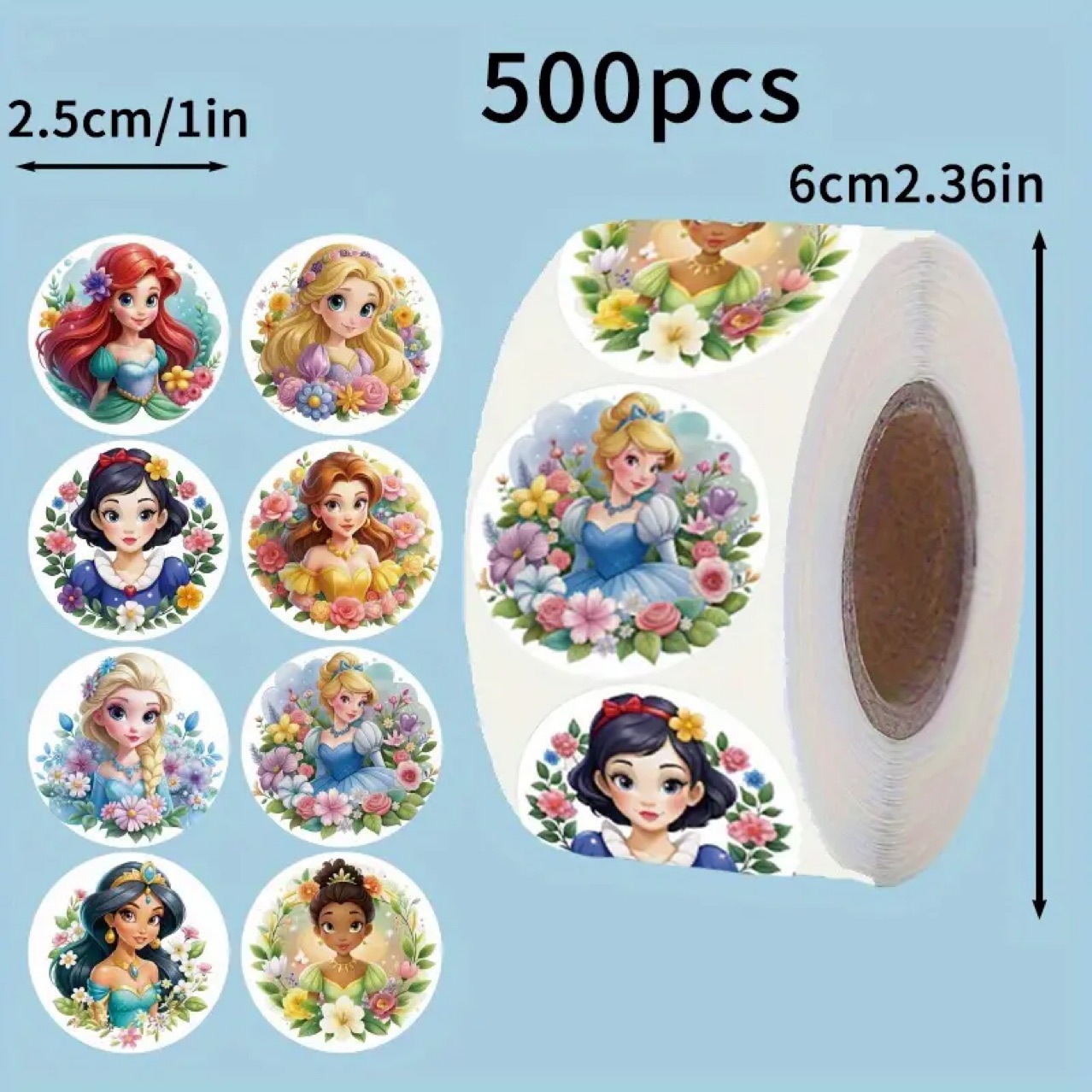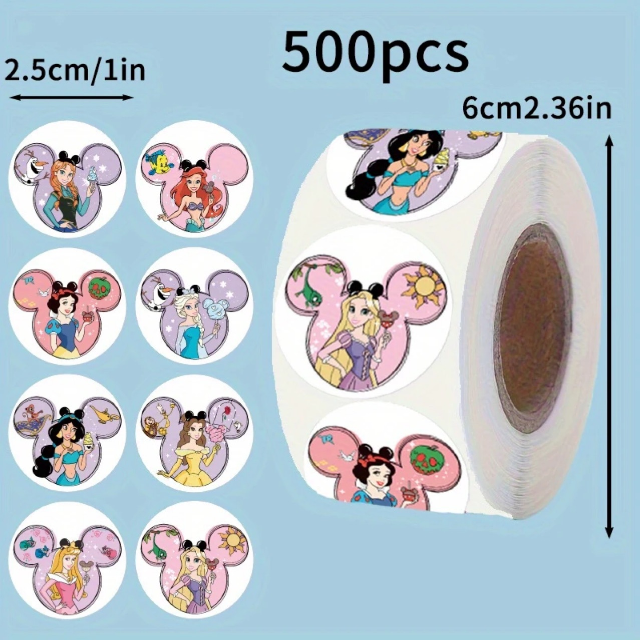 500 ステッカー/ロール漫画かわいい正方形エルサプリンセスステッカーロールステッカーおもちゃ装飾ハンドブック素材ステッカー