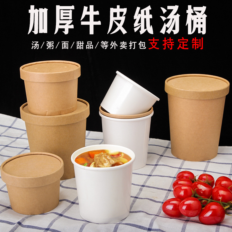 使い捨てクラフト紙蓋付き軽食外食ファストフードスープカップスープ桶蓋付き出前円形串おでんスープ