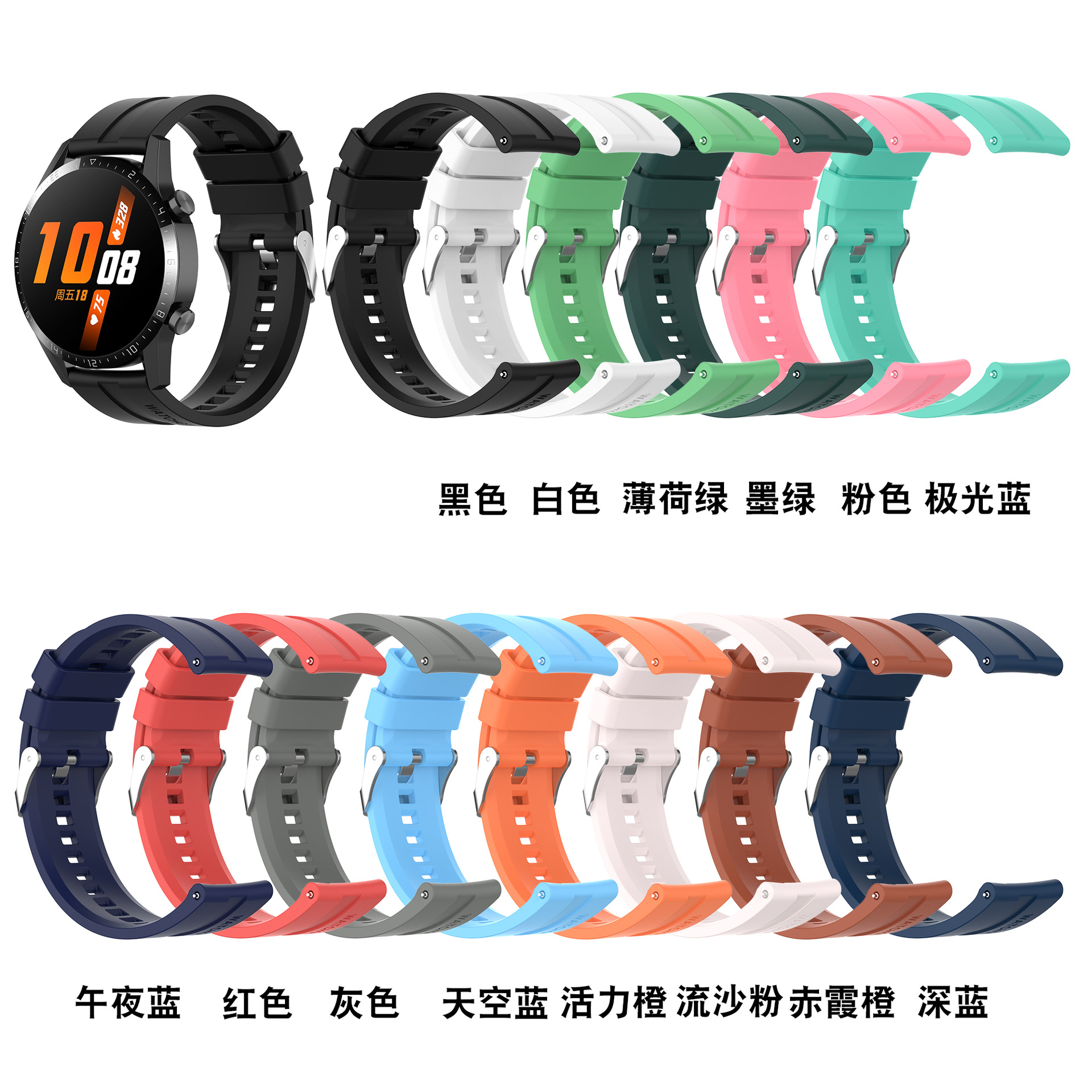 適用華為watch gt3 46mm gtrunner gt2 e汎用22mmシリコンバンド銀ボタン