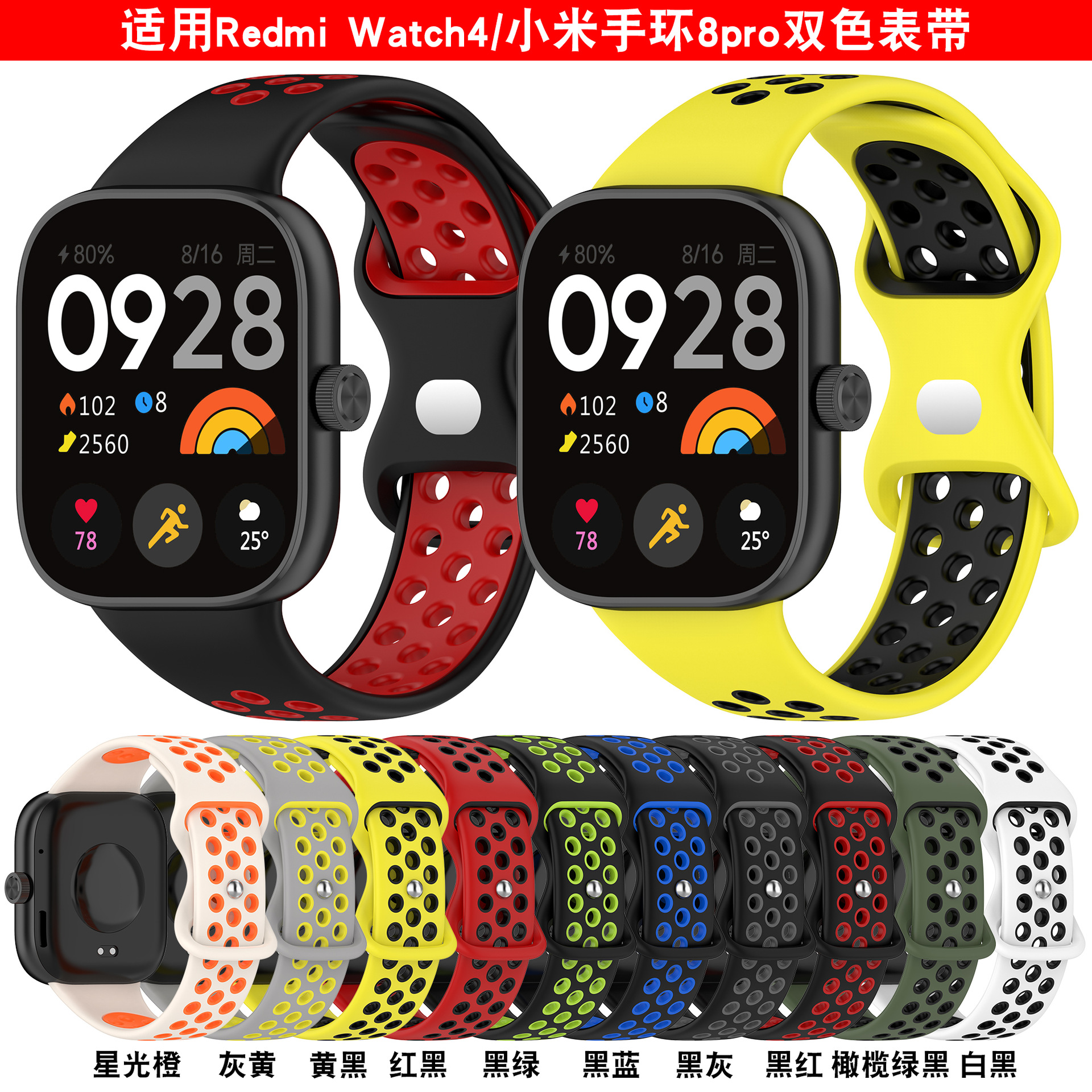 適用小米ブレスレット9pro/8pro 2色シリコンバンド赤米watch4 2色バンド赤米腕時計5