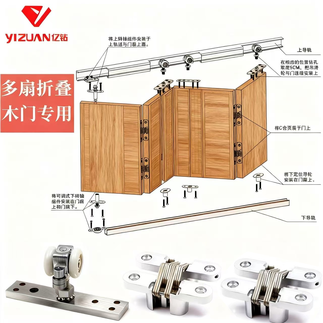 折り畳みドア金物部品セット木門シフトドア軌道屏風遮断ドアプーリー自在吊り輪十字ヒンジ