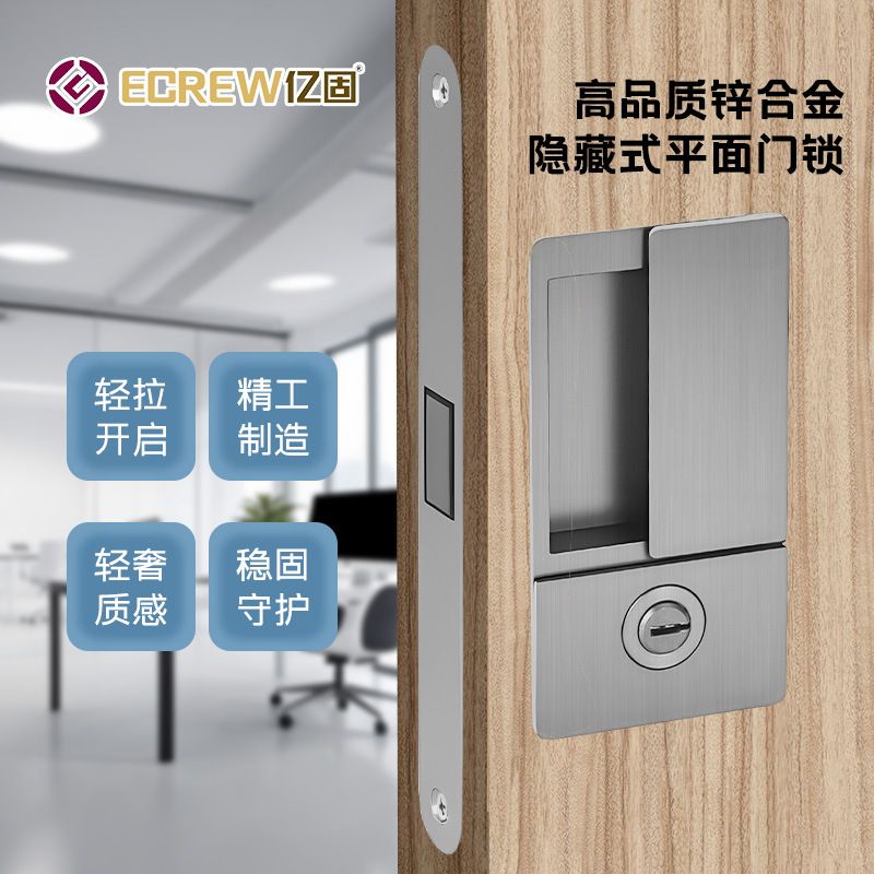 Yigu ブランドの寝室のドアロック屋内目に見えないドア磁気ドアロックフラットロック埋め込みドアハンドル引き戸ロック