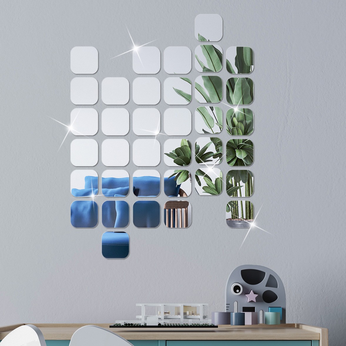 ミラーウォールステッカーモダンDIYアートホーム装飾正方形ステッカーリビングルーム寝室アクリルミラーウォールステッカー