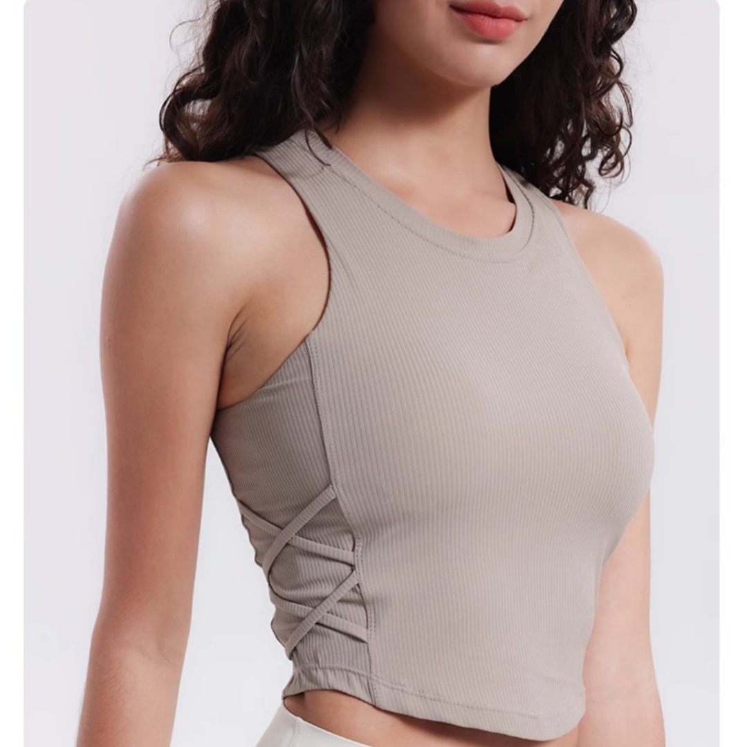 新しいスポーツブラ女性用耐衝撃ランニングリブフィットネスホルターネック美背中ブラヨガベストトップ通気性