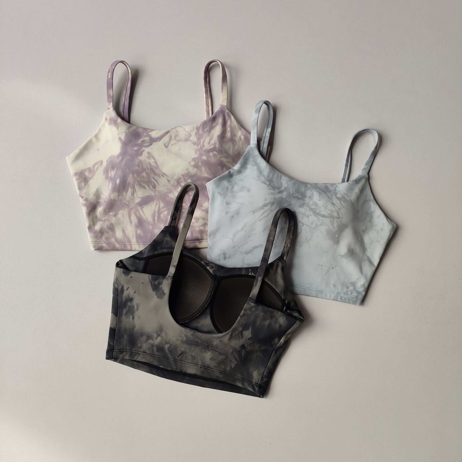 高品質スポーツブラ女性のタイダイスパゲッティストラップ美しいバックフィットネスサスペンダートップヨガブラベストバー夏