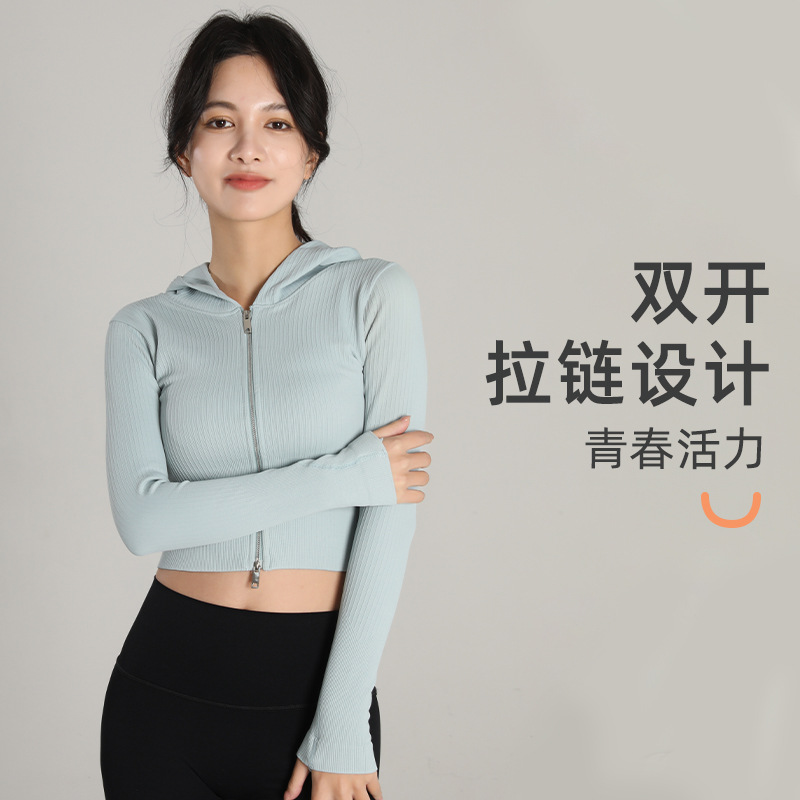 帽子付きのタイトなスポーツコート女性ランニングトレーニングヨガ服長袖カーディガン