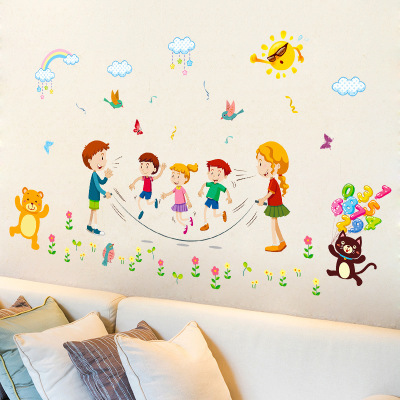 Xl 7195仲蘭歓楽縄跳び児童幼稚園の背景装飾防水は自己接着壁貼り絵を取り除くことができる
