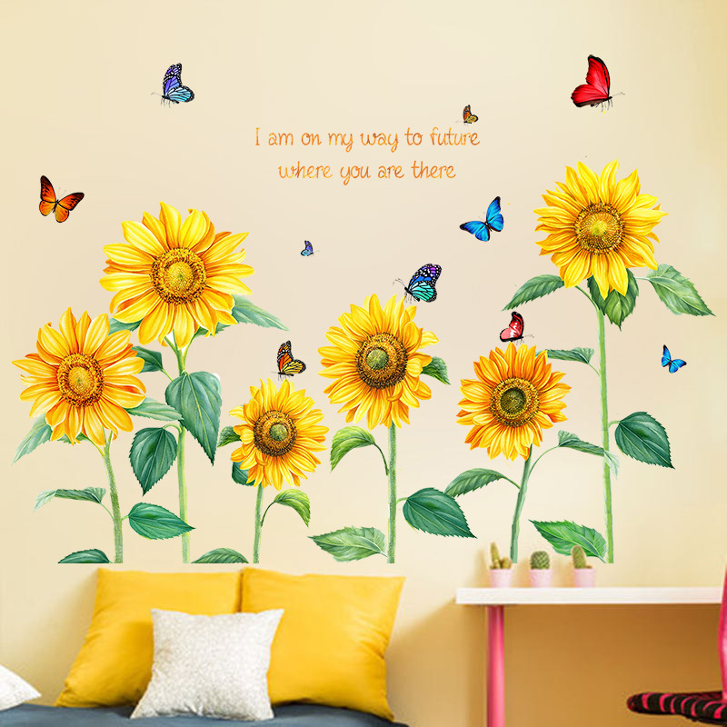 Xy 9019ひまわりの壁のシール寝室の暖かい客間の装飾は絵を貼って削除することができます。