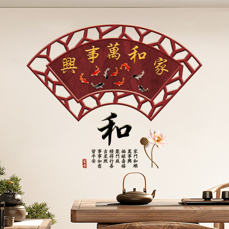 WY9035古風装飾画扇壁シール自己接着客間家庭用テレビ背景面貼り画装飾自己接着
