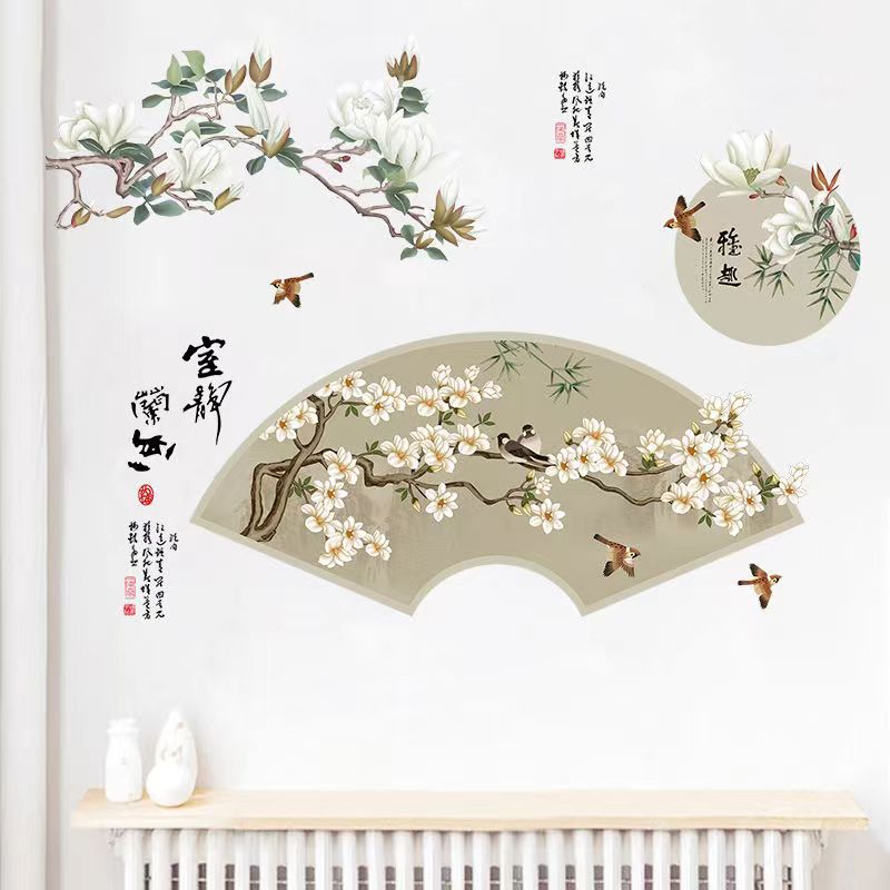 Sk9377仲蘭青花磁器桃花結開客間寝室ベランダ書斎装飾移動可能防水壁貼り画