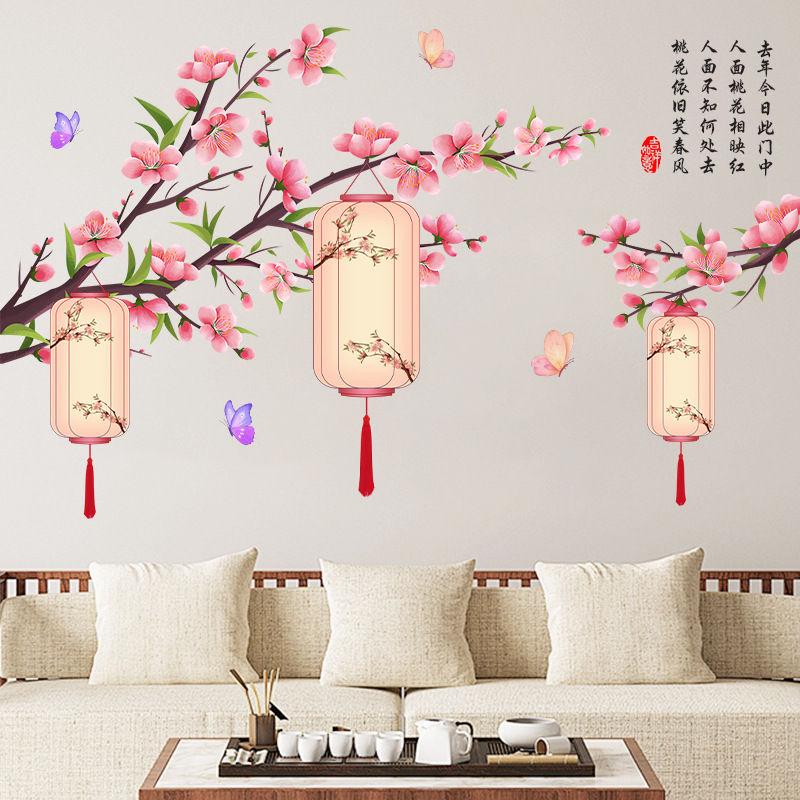 WY9036古风ランタンウォールステッカー年画リビングルームテレビ背景壁装饰ステッカー自己粘着壁ステッカー