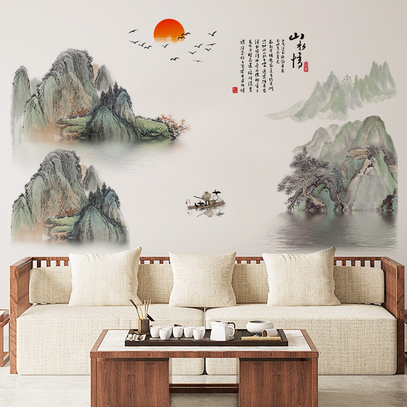 WY9089山水壁面装飾貼り絵客間装飾画ソファー壁ステッカー書斎茶室壁自己接着