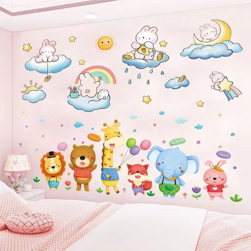 子供の漫画の小さい動物の壁は部屋の赤ちゃんを貼って背景の壁面の装飾品のステッカーの壁紙を貼り付けます。