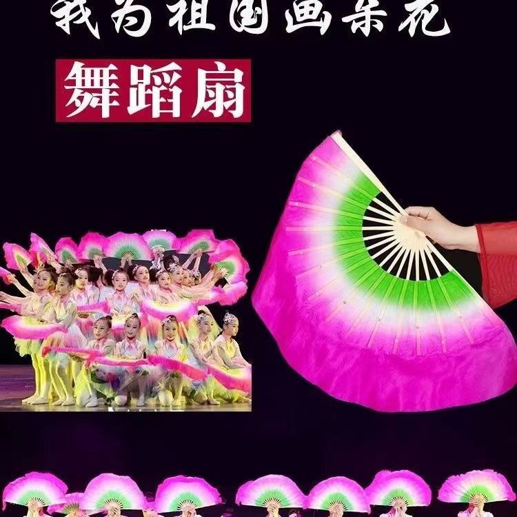 ダンス扇子中国古典舞生命の河長絹織物扇子舞白酒紅グラデーション色広場舞舞舞扇