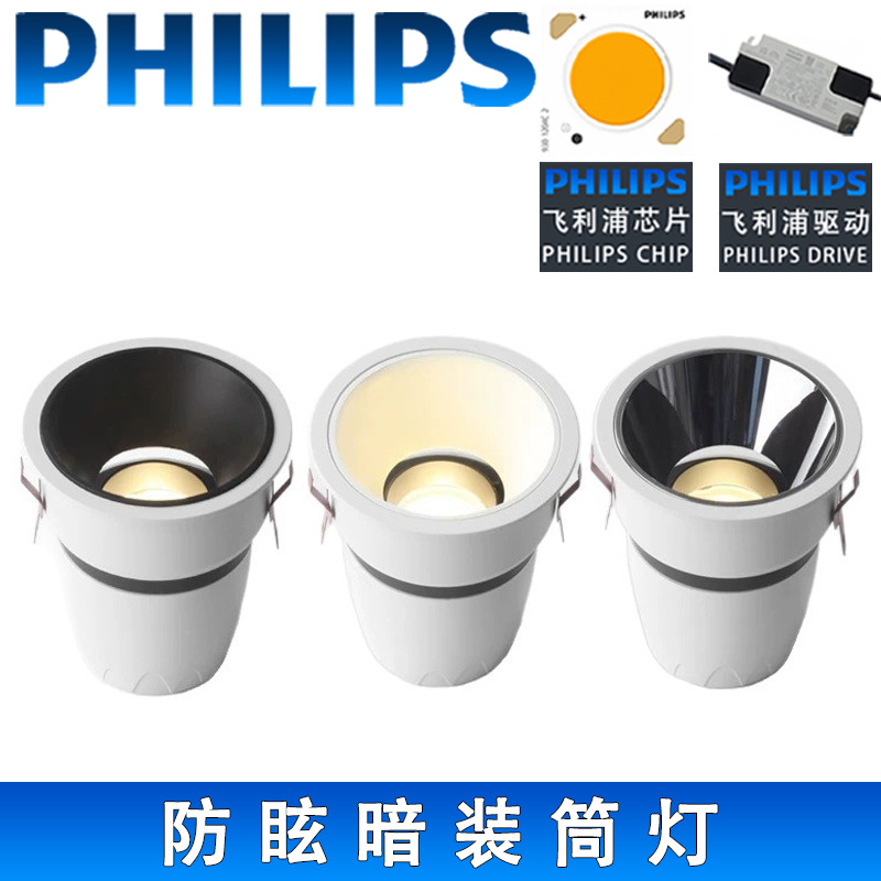 フィリップスリビングルーム埋め込み式ダウンライト別荘高階無メインライト照明コブ深杯アンチグレアledスポットライト