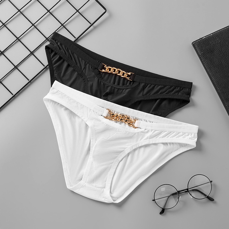 メンズ中空メタルチェーン高弾性セクシーなブリーフクロスボーダー薄いアイスシルク U 凸ローウエスト通気性下着