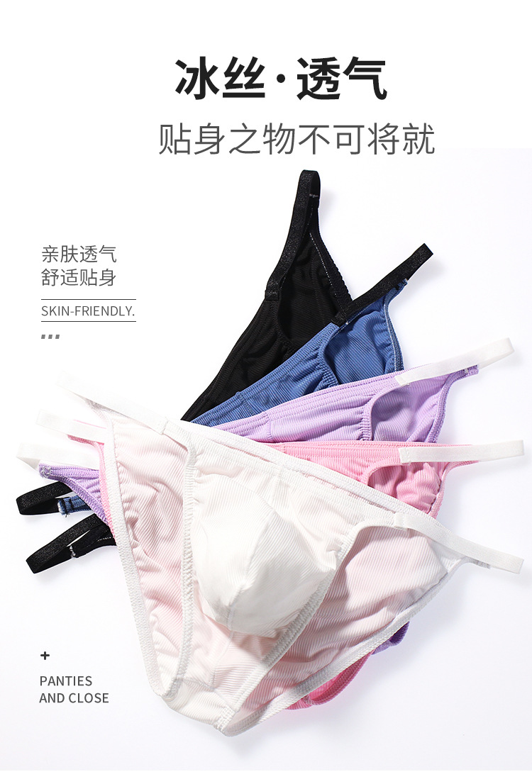 高叉氷糸ねじ男性下着三角純色氷糸ねじ下着男性通気三角ズボン男性卸売り